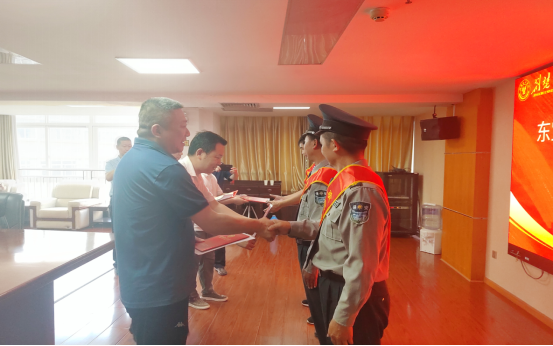 为大力弘扬社会正气,鼓励见义勇为行为,6月26日上午东宝区委政法委在我校行政楼A306会议室举行见义勇为先进表彰大会,保卫部(处)金鹏程、赵兵两名同志被授予“东宝区见义勇为先进群体”荣誉称号,并分别领取证书和1000元奖金。