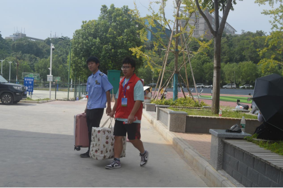 用“热情”迎新:学生报到期间,球友会QY千亿入口全体人员早6:30分准时到岗,不惧炎热、驻守一线,秉着“高效、快捷、文明、和谐”的服务方针,对报道车辆进行疏导,并引导其安全停车,对需帮助的新同学实行一对一帮扶,着实让同学和家长们感受到荆楚理工的热情。