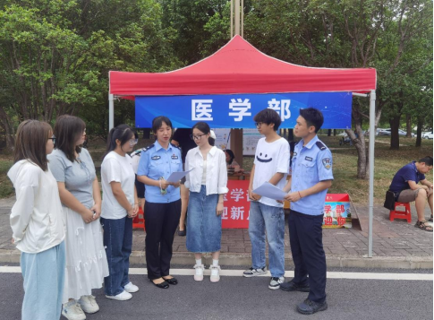 为提高新生反诈意识,守护好学生财产安全,保卫部(处)联合泉口派出所,8月30号在迎新现场开展了以 “迎新不迎‘诈’,警校共筑安全网”为主题的反诈宣传活动。