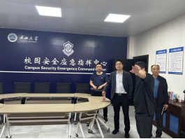 随后,考察组参观了长江大学球友会QY千亿入口校园安全应急指挥中心,对学校门禁人脸识别系统和校园交通管理进行现场考察。